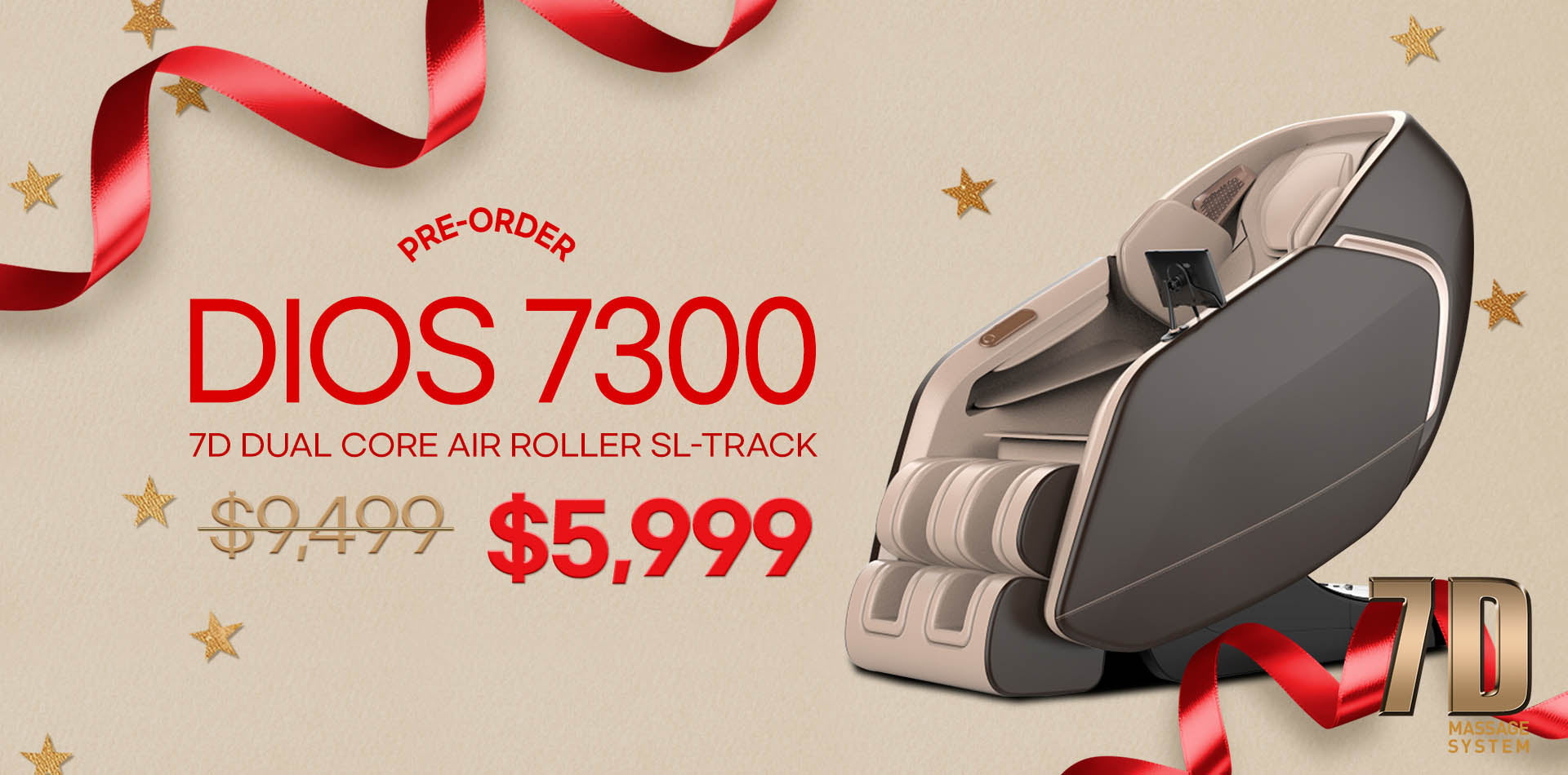 [3rd Batch] [Pre-Order 2-28-2026] [Save up to $5647 : $3500 Off + Eye Massager + Rug + White Glove Delivery + Premium Package] Dios Massage Chair 7D Dual Core Air Roller SL-track with 3D Calf Kneading Dios-7300 Beige